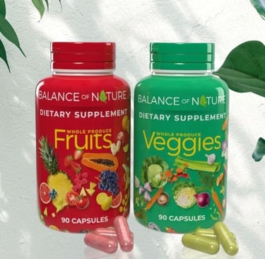 Balance of Nature Fruits & Veggies Supplements provide a convenient way to get the nutrients of whole fruits and vegetables every day. This set includes 90 fruit capsules and 90 vegetable capsules, made from natural ingredients like apple, banana, blueberry, broccoli, kale, carrot, and more. Vegan, gluten-free, kosher, and free from fillers or binders, these capsules are processed with a vacuum-cold method to preserve nutrients. Recommended for adults and children alike, they are a simple solution for supporting daily nutrition, energy, and overall wellness without having to eat multiple servings of produce.