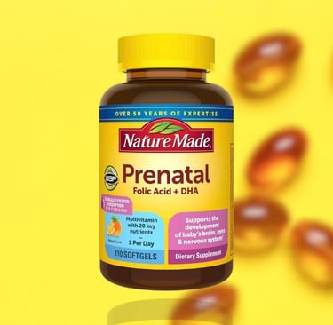 A once-daily prenatal multivitamin with folic acid and DHA, designed to support daily nutritional needs for women before and during pregnancy.