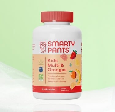 SmartyPants Kids Multivitamin Gummies are designed to help fill daily nutrient gaps for children ages 4 and up. These easy-to-chew gummies combine essential vitamins like C, D3, A, B6, B12, K, and zinc with Omega-3 fish oil (EPA & DHA) to support immune health, bone development, and overall wellness. Made with premium, bioavailable nutrients, they’re gluten-free, non-GMO, and free from artificial colors and flavors. With kid-approved fruit flavors, these gummies make daily nutrition simple and enjoyable for growing kids.